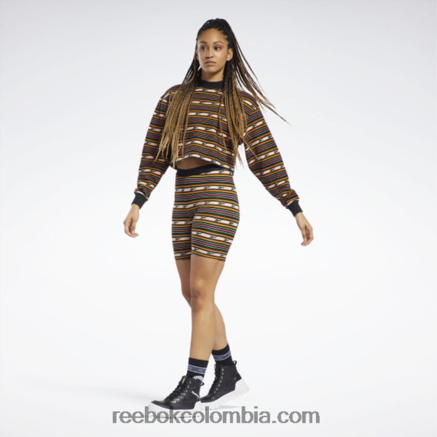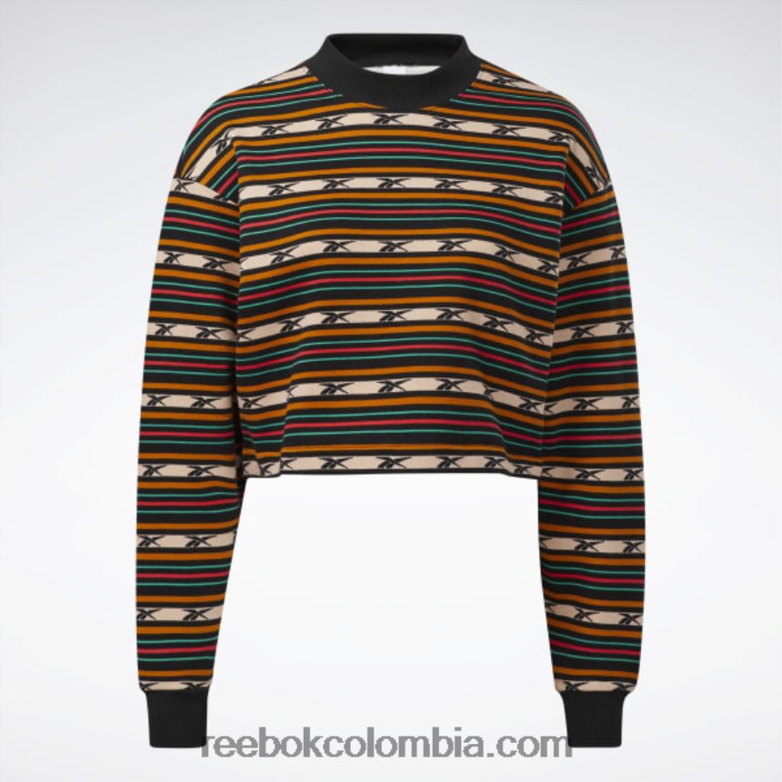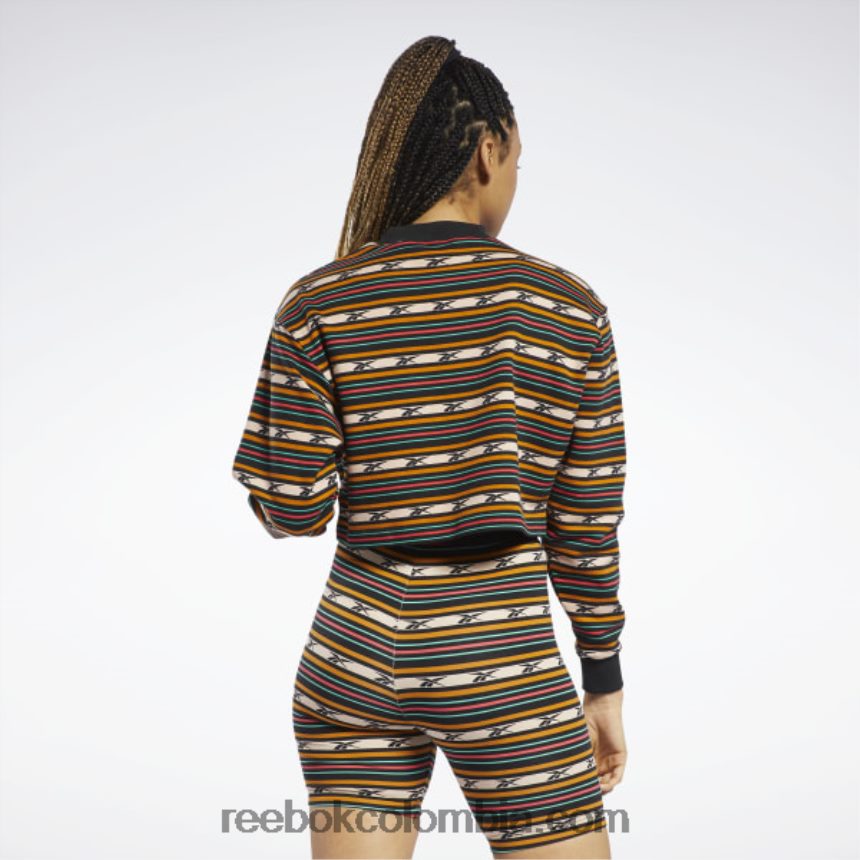 Ponte esta sudadera recortada para mujer de reebok antes de emprender tu próxima aventura. su divertido diseño a rayas insinúa el estilo clásico del pasado. la construcción de rizo francés es súper suave y lujosa, así que prepárate para relajarte junto a la fogata con comodidad. nuestros productos de algodón se obtienen en su totalidad a través del cultivo sostenible de algodón y están hechos con al menos un 50 % de mejor algodón.