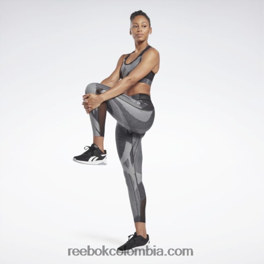 estos leggings de entrenamiento reebok para mujer están diseñados para ayudarte a alcanzar tus objetivos de fitness. la tela compresiva y la cintura ancha de tiro medio te brindan una sensación de abrazo. La tecnología Speedwick te ayuda a mantenerte seco en la sala de pesas o en las clases de cardio, mientras que los paneles de malla agregan ventilación. el estampado abstracto se inspira en un diseño de tenis de archivo.